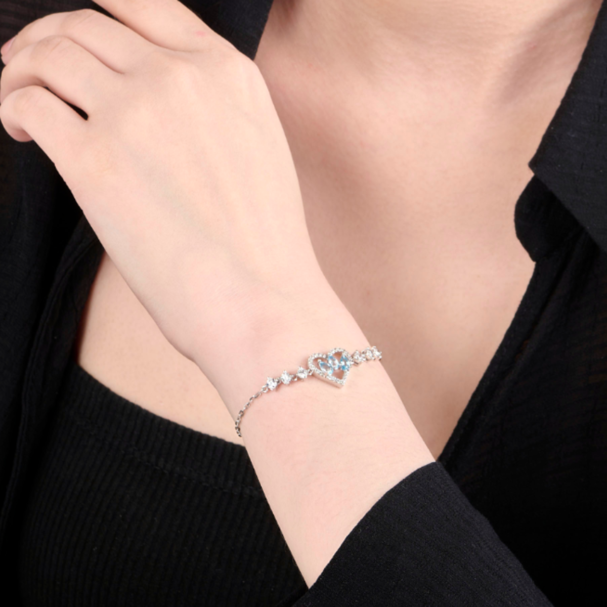 Những mẫu trang sức đá màu sang trọng, tinh khôi chính là tín vật để mọi người trao nhau không chỉ trong mùa lễ hội. Sắc xanh của đá Topaz tạo cảm giác khoan dung, chân thành, ngoài ra màu xanh lam là màu của mặt biển, bầu trời vì thế sẽ mang lại sự bình tâm, cảm giác dễ chịu tin cậy. Không chỉ sở hữu kiểu dáng thời thượng với vàng 14K tinh xảo, chiếc lắc tay trong BST The Shining Princess còn cộng hưởng thêm sắc xanh thẫm sang trọng, tôn vinh nhan sắc của quý cô.